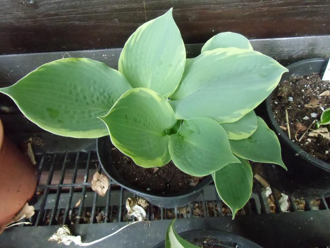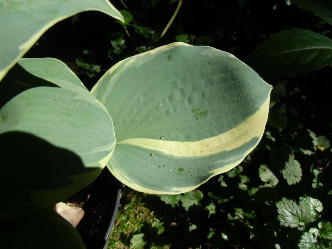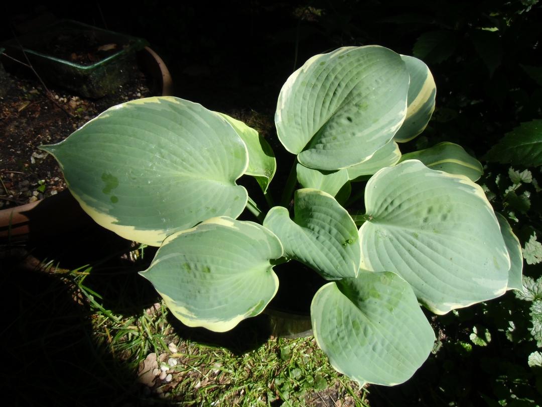 Diese Hosta ist mir als Sorte "Frances Williams" verkauft worden. Ich bin mir aber nicht sicher, ob das stimmt.