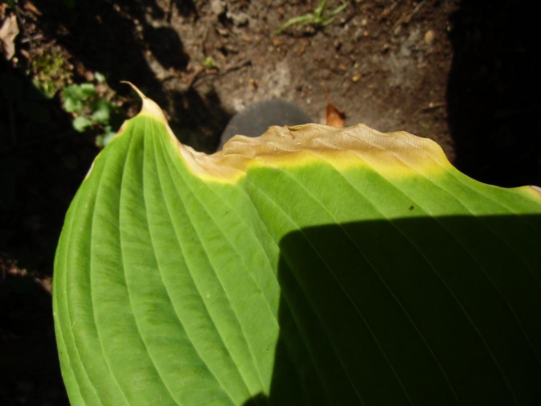 Hier haben wohl Wassertropfen als Brennglas gewirkt. Diese Sorte verträgt eigentlich erheblich mehr Sonne als dieses Exemplar abbekommen hat.