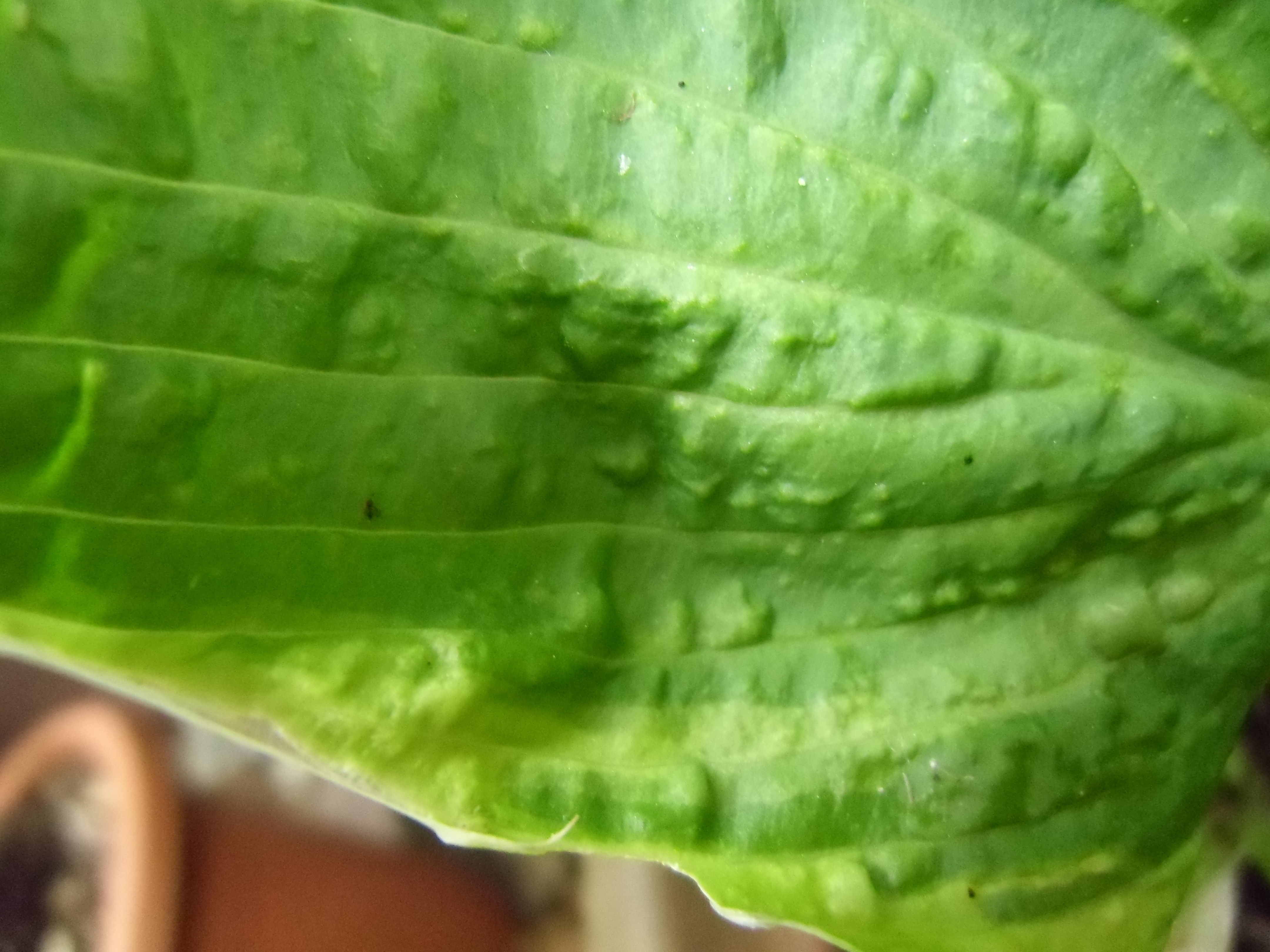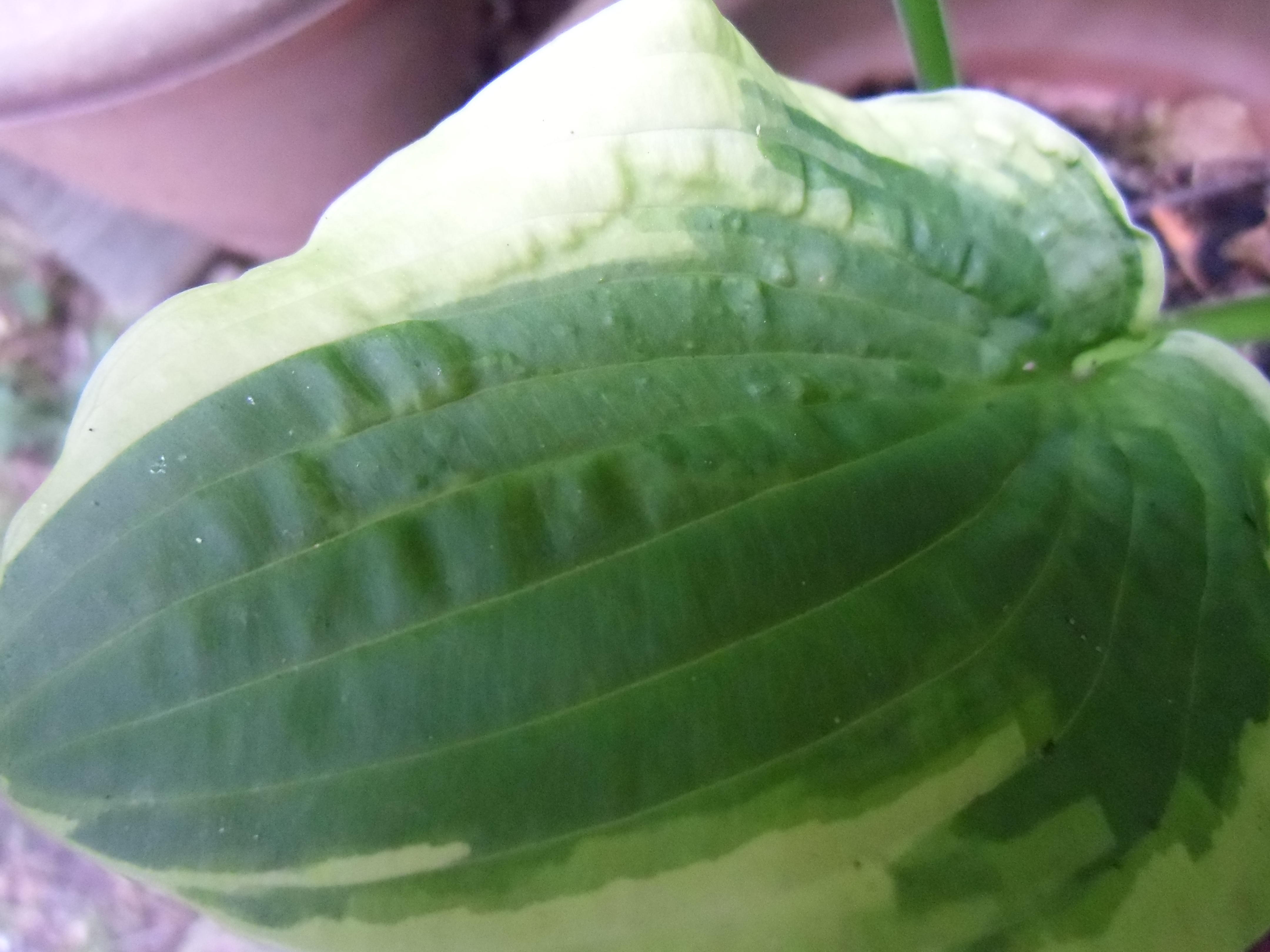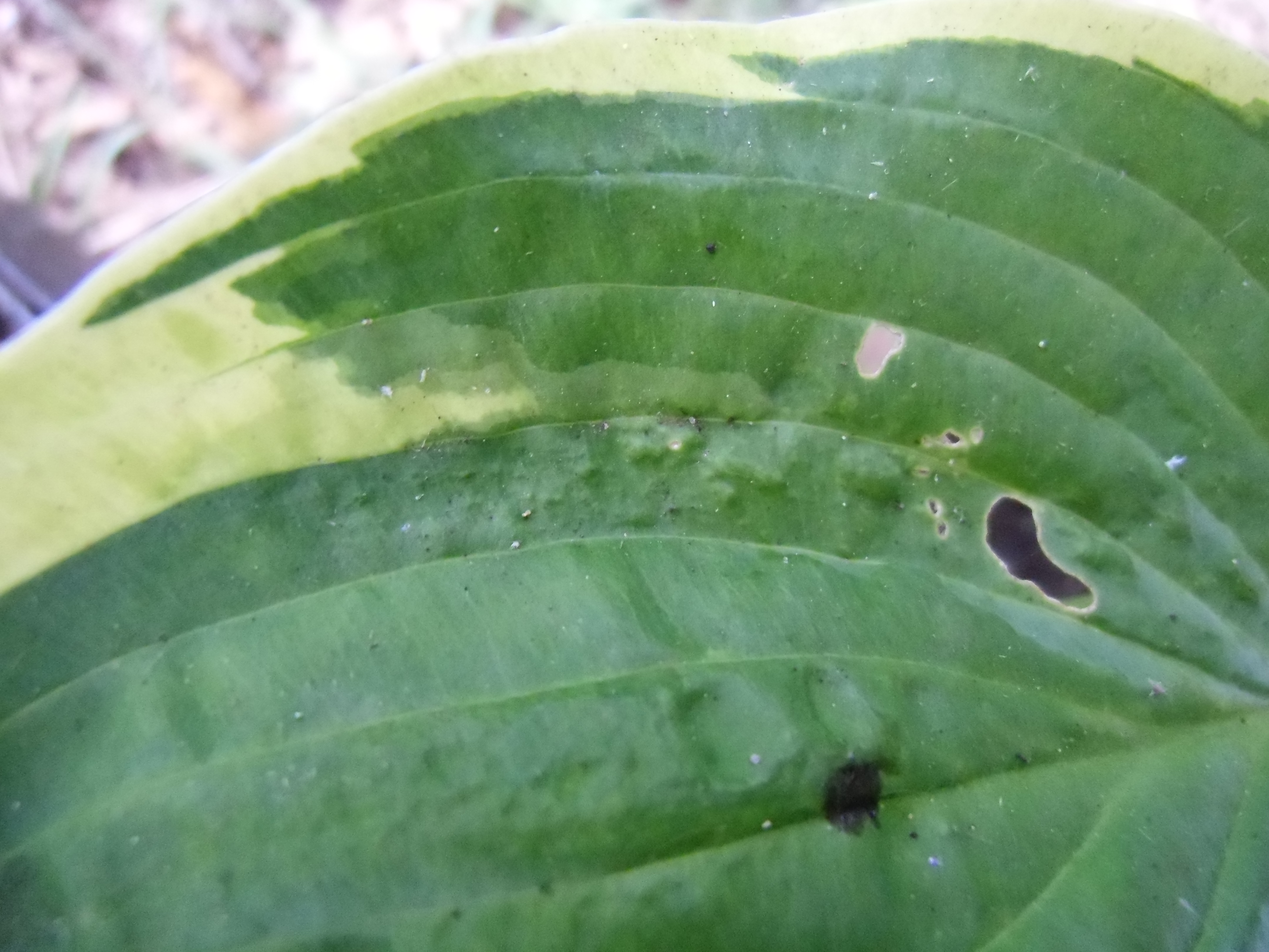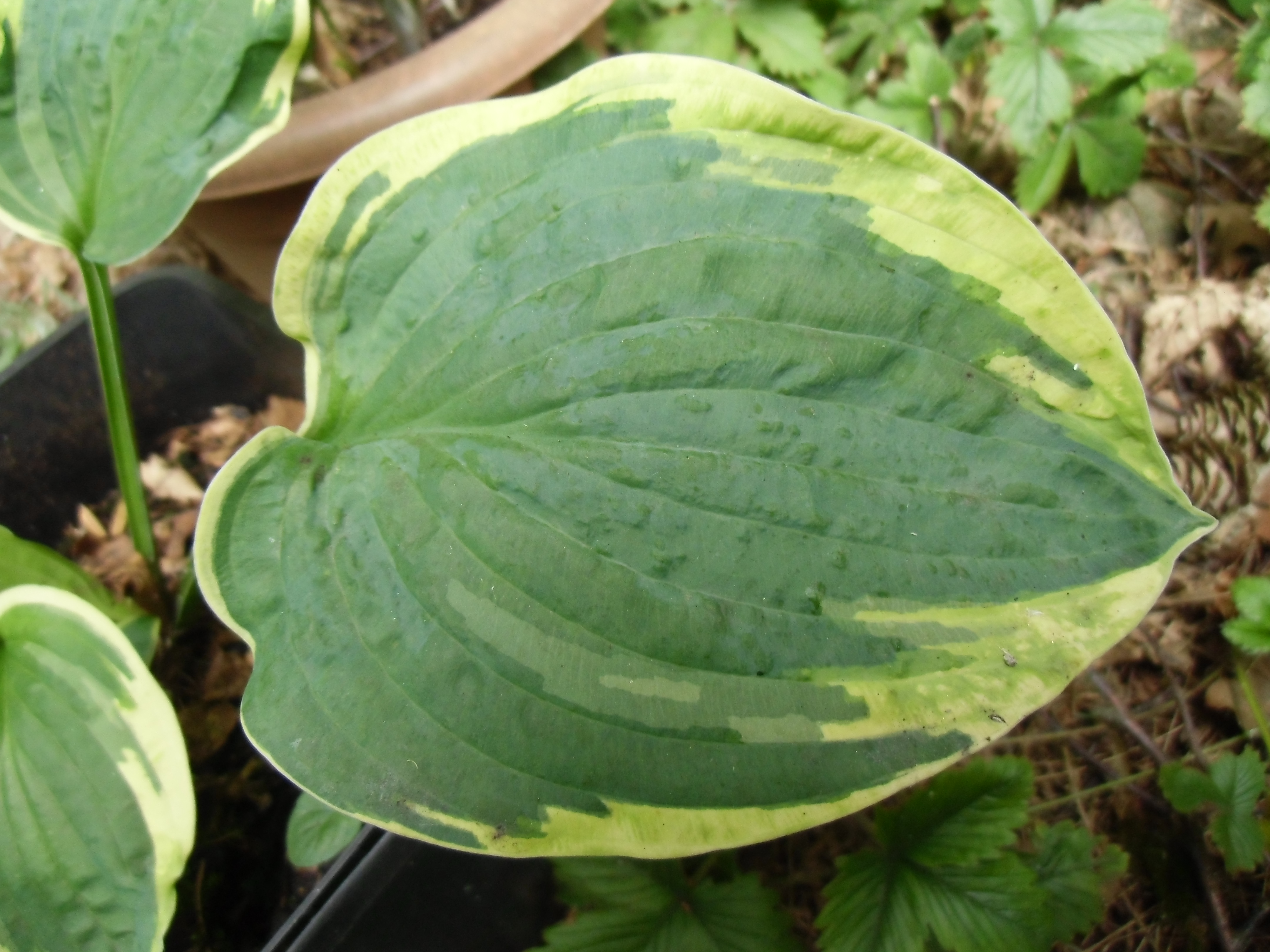Diese beiden Hostas (Master-Stauden hat die als Sorte "Honeysong" verkauft) habe ich weggeworfen, da sie vermutlich mit dem Hosta-Virus HVX infiziert sind (Schadbild: "sunken/ collapsing tissue").